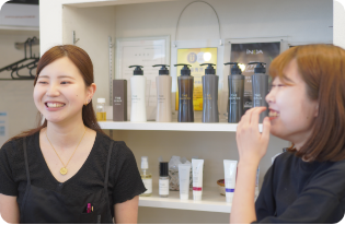 仕事内容は、カウンセリング→選定→塗布→シャンプーがメインです。